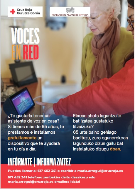 URRIAREN 27AN (ASTELEHENA), 17:00etan, informazio-hitzaldi bat egingo da gure elkartean, “VOCES EN RED” ekimena aurkezteko. Ekimena GURUTZE GORRIAREN eta AMANCIO ORTEGA FUNDAZIOAREN arteko aliantzatik sortu zen, 65 urtetik gorakoentzat.